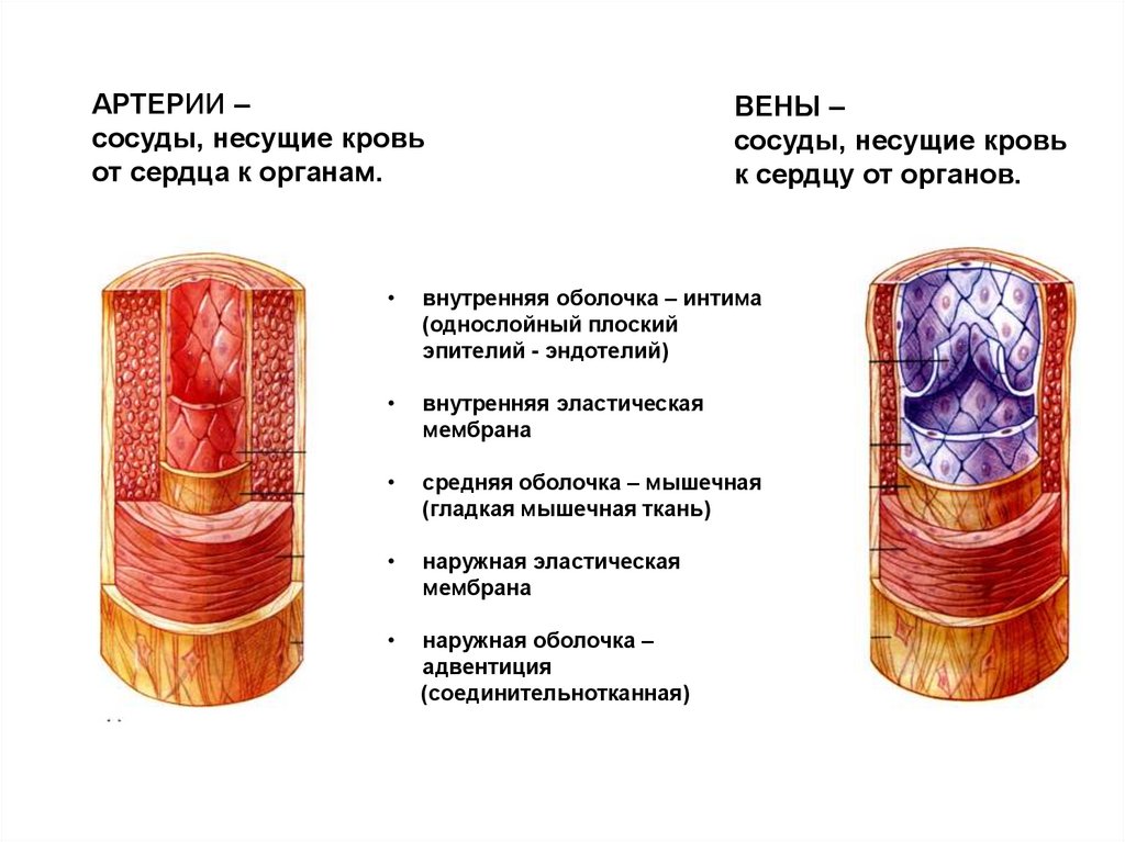 АРТЕРИИ –сосуды, несущие кровь
