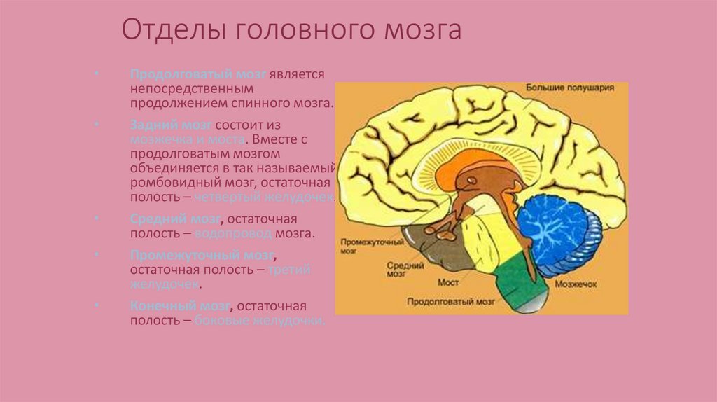 Отделы головного мозгаПродолговатый мозг является
