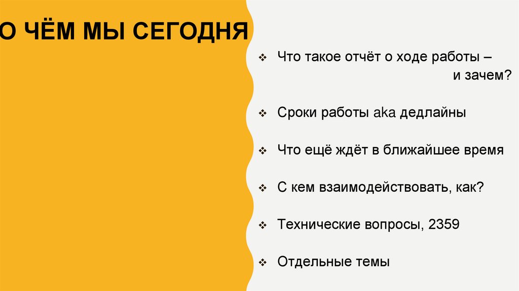 О ЧЁМ МЫ СЕГОДНЯЧто такое отчёт о ходе работы –