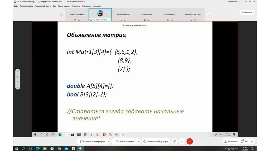 Матрица. Объявление матриц