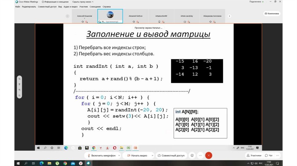 Матрица. Ввод матрицы
