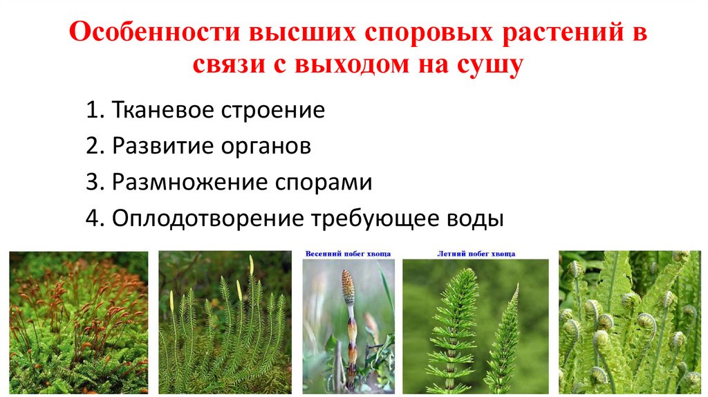 Особенности высших споровых растений всвязи с выходом на сушу