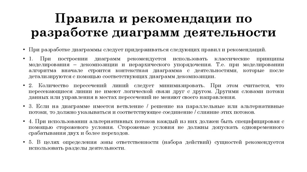• При разработке диаграммы следует придерживаться следующих правил и рекомендаций.