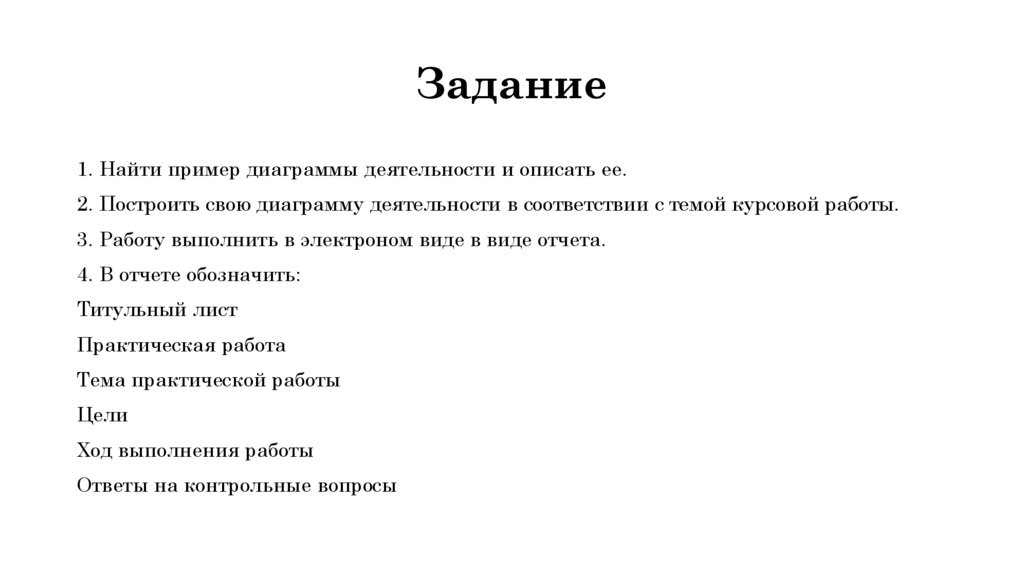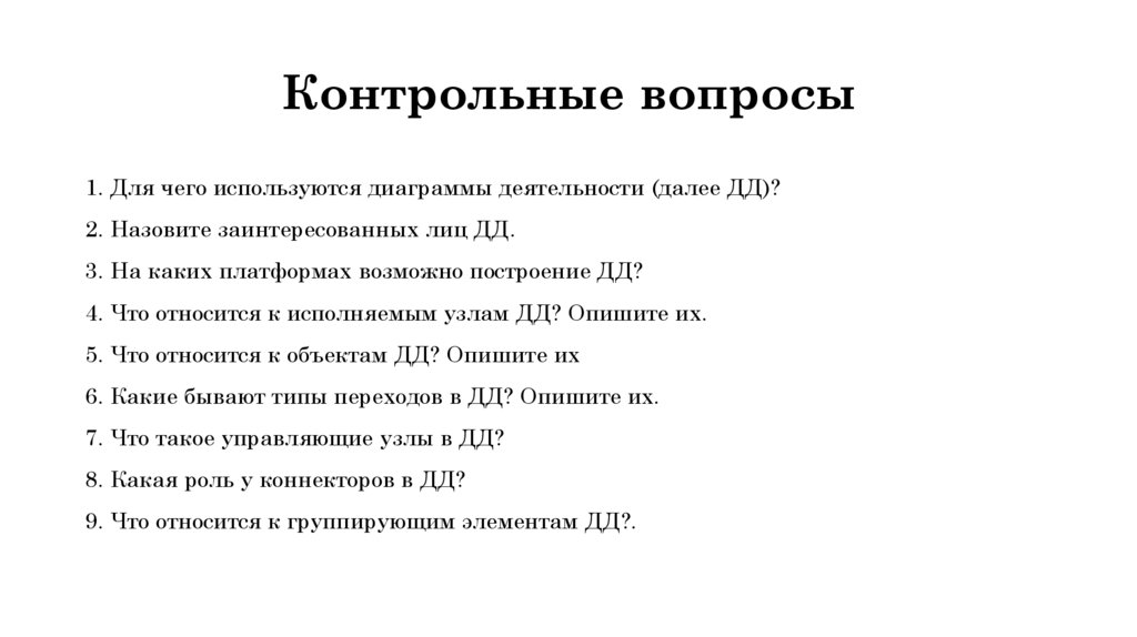 Контрольные вопросы1. Для чего используются диаграммы деятельности (далее ДД)?
