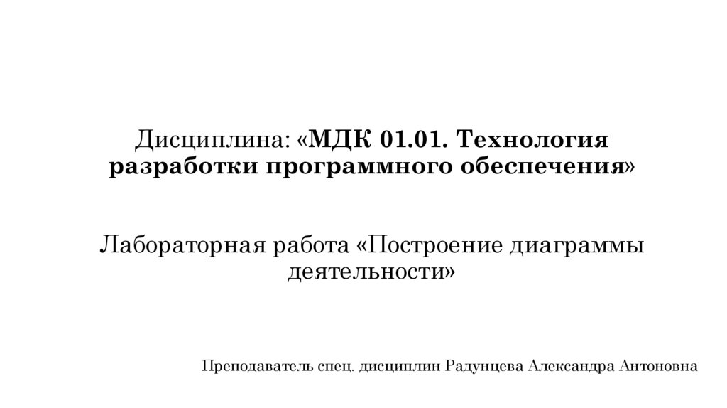 Дисциплина: «МДК 01.01. Технологияразработки программного обеспечения»