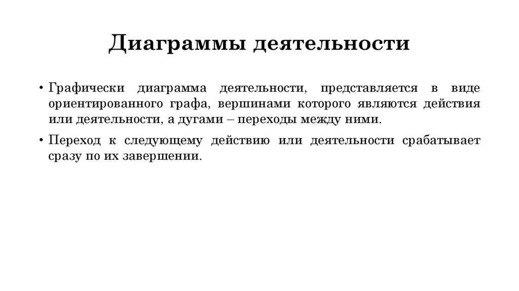 Диаграммы деятельности• Графически диаграмма деятельности, представляется в виде