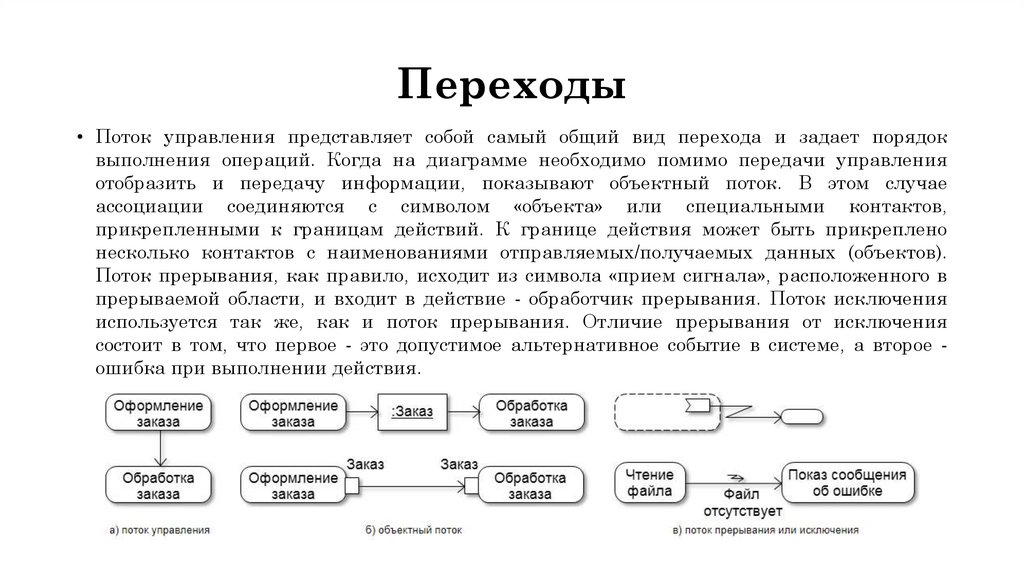 Переходы• Поток управления представляет собой самый общий вид перехода и задает порядок