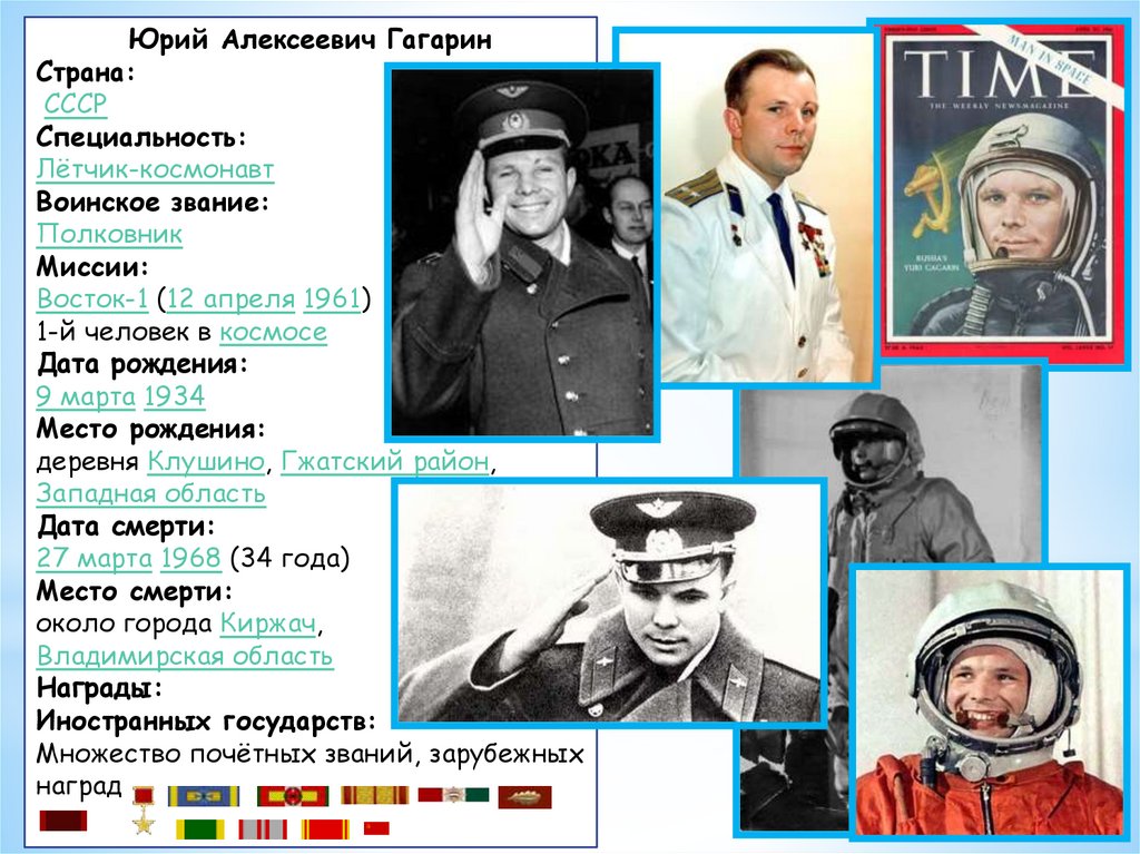 Всем миром Ю.А.Гагарин признан первымпокорителем космоса, установившим абсолютные