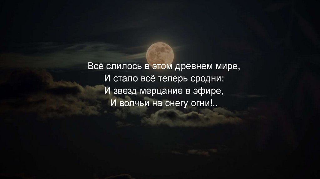 Всё слилось в этом древнем мире,И стало всё теперь сродни: