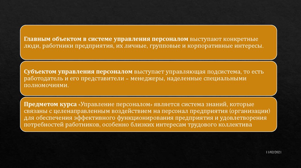 Главным объектом в системе управления персоналом выступают конкретныелюди, работники предприятия, их личные, групповые и корпоративные интересы.