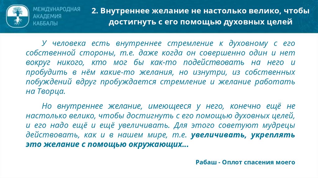 2. Внутреннее желание не настолько велико, чтобыдостигнуть с его помощью духовных целей