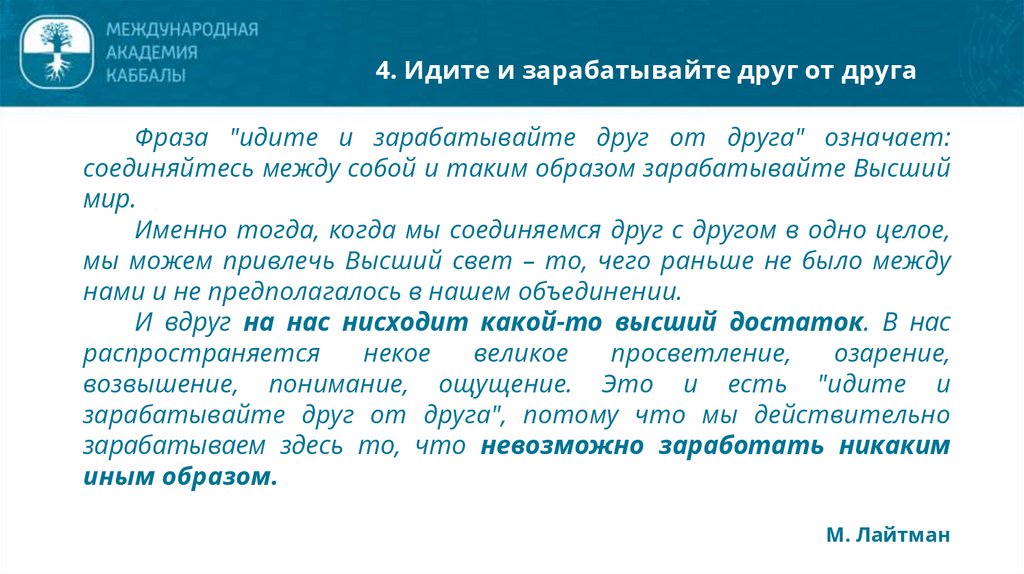 соединяйтесь между собой и таким образом зарабатывайте Высший