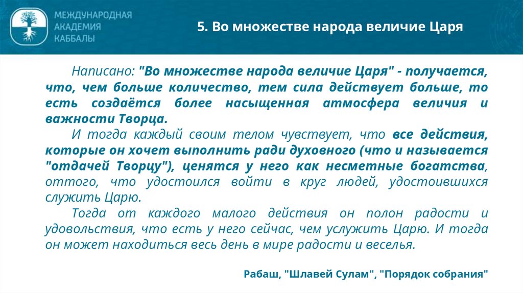 5. Во множестве народа величие ЦаряНаписано: "Во множестве народа величие Царя" - получается,