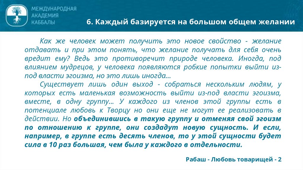 6. Каждый базируется на большом общем желанииКак же человек может получить это новое свойство - желание