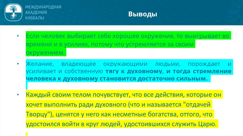 ВыводыЕсли человек выбирает себе хорошее окружение, то выигрывает во