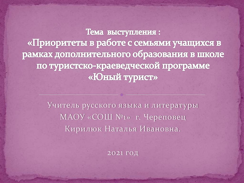 Приоритеты в работе с семьями учащихся в рамках дополнительного образования в школе по программе "Юный турист"