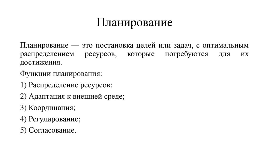 ПланированиеПланирование — это постановка целей или задач, с оптимальным