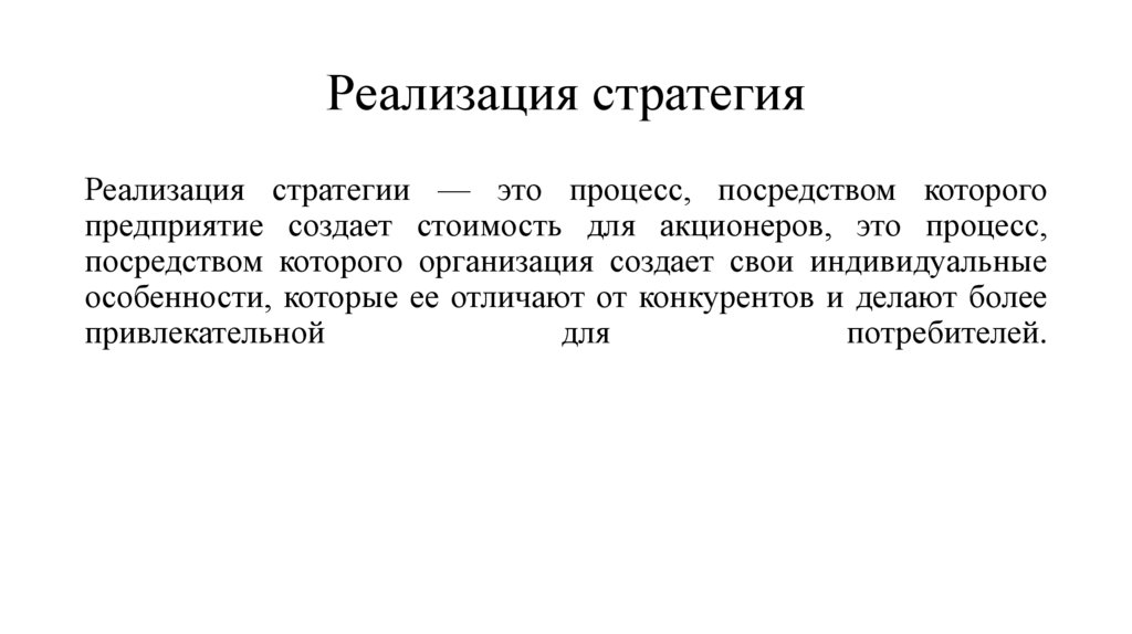 Реализация стратегияРеализация стратегии — это процесс, посредством которого