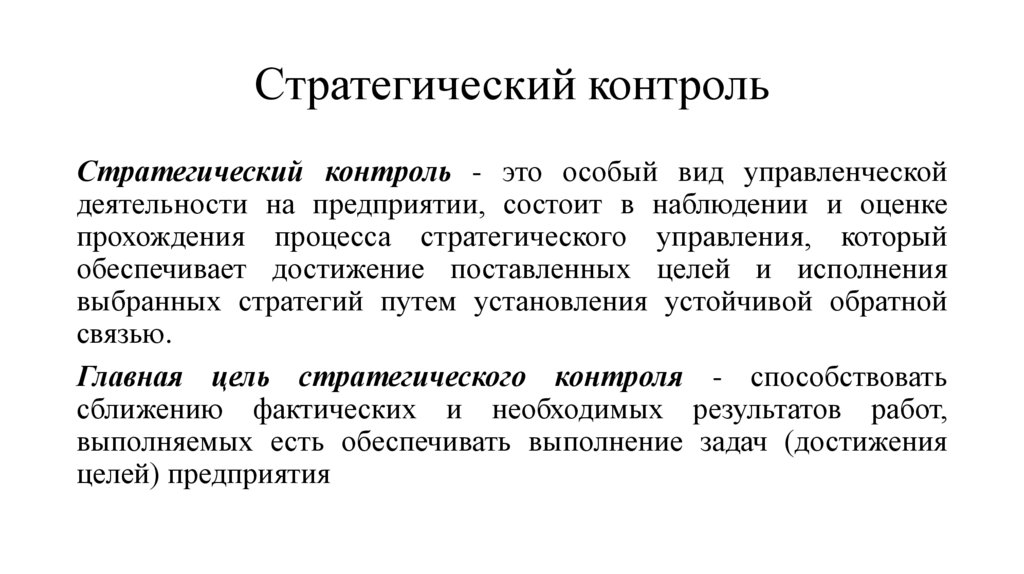 Стратегический контрольСтратегический контроль - это особый вид управленческой