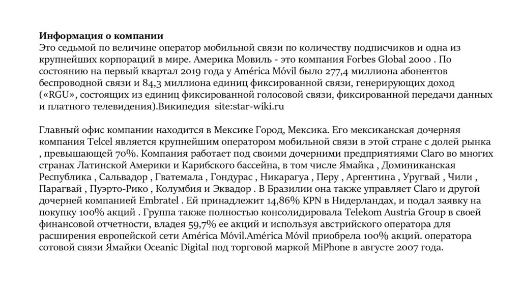 крупнейших корпораций в мире. Америка Мовиль - это компания Forbes Global 2000 . По