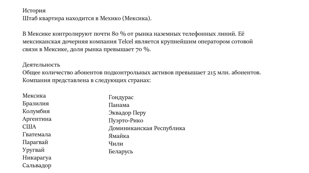 связи в Мексике, доля рынка превышает 70 %.