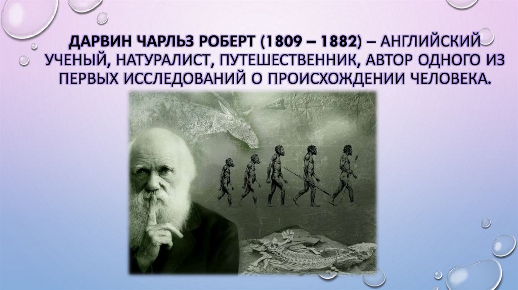 ДАРВИН ЧАРЛЬЗ РОБЕРТ (1809 – 1882) – АНГЛИЙСКИЙУЧЕНЫЙ, НАТУРАЛИСТ, ПУТЕШЕСТВЕННИК, АВТОР ОДНОГО ИЗ