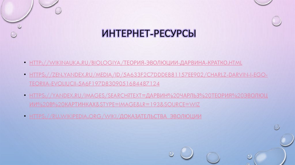 ИНТЕРНЕТ-РЕСУРСЫ• HTTP://WIKINAUKA.RU/BIOLOGIYA/ТЕОРИЯ-ЭВОЛЮЦИИ-ДАРВИНА-КРАТКО.HTML