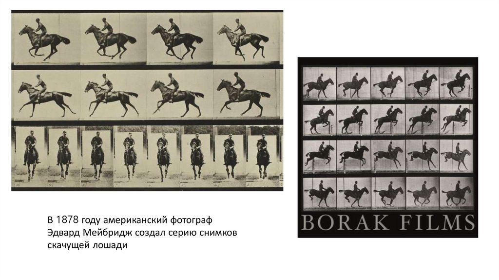 В 1878 году американский фотографЭдвард Мейбридж создал серию снимков