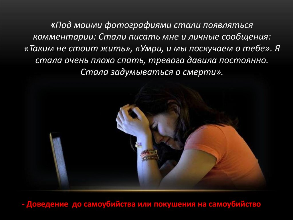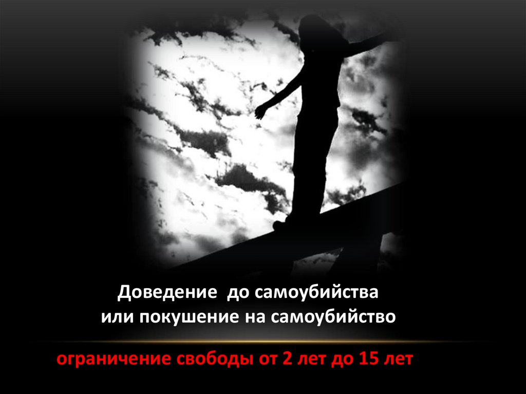 - Доведение до самоубийства или покушения на самоубийство