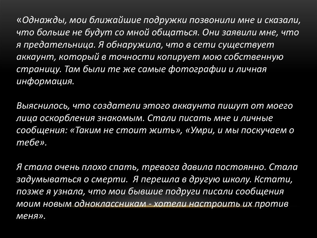 позже я узнала, что мои бывшие подруги писали сообщения