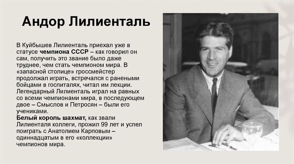 Андор ЛилиентальВ Куйбышев Лилиенталь приехал уже в