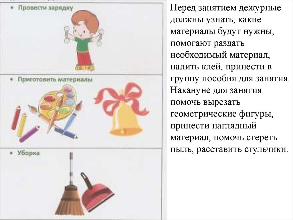 Надевают фартуки, перчатки, берут необходимые атрибутыПоливают растения и моют их листья, обрезать у них сухие ветки и