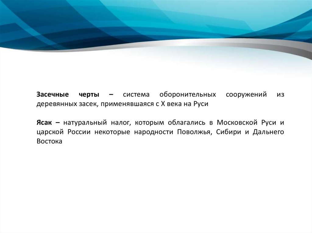 Засечные черты – система оборонительныхдеревянных засек, применявшаяся с X века на Руси