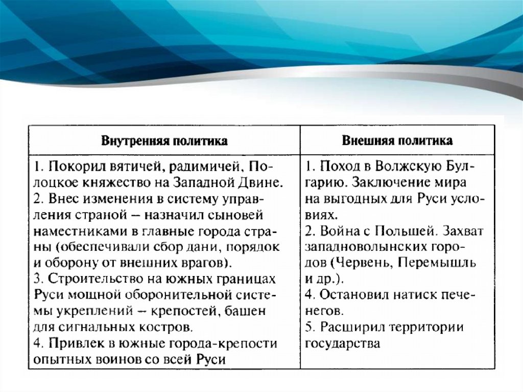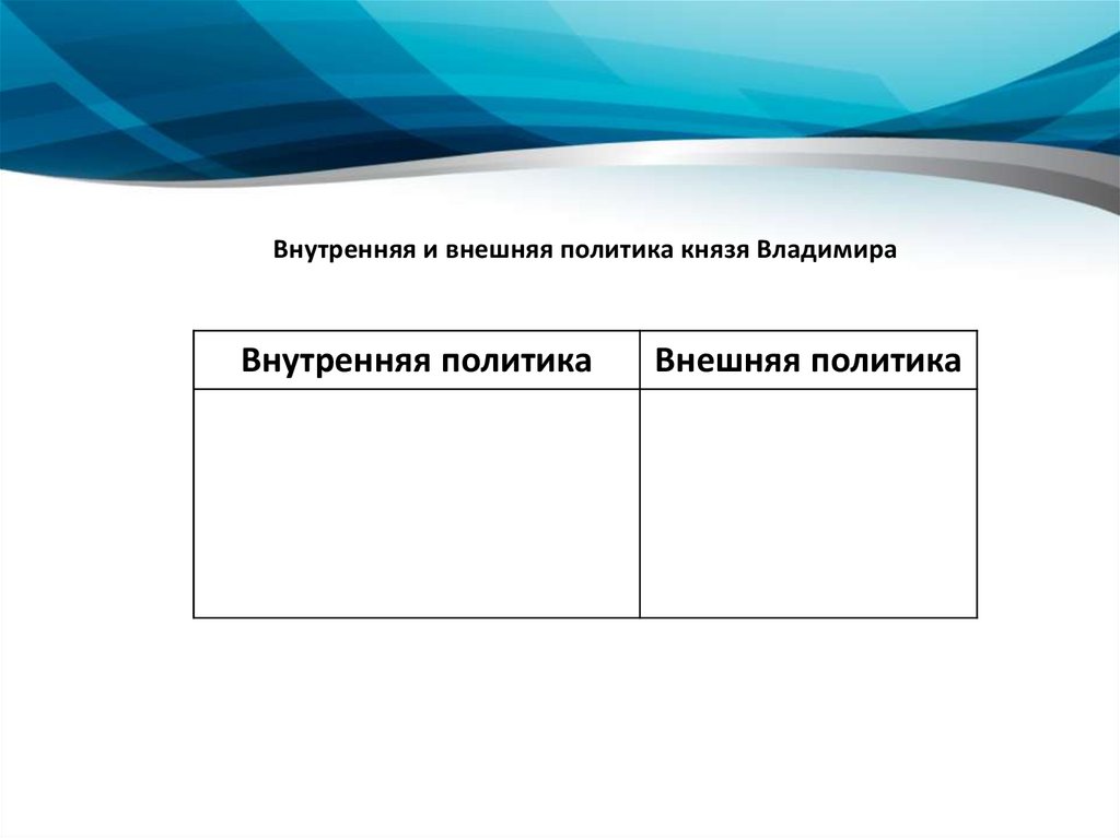 Внутренняя и внешняя политика князя ВладимираВнутренняя политика