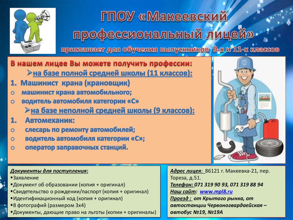 Адрес лицея: 86121 г. Макеевка-21, пер.