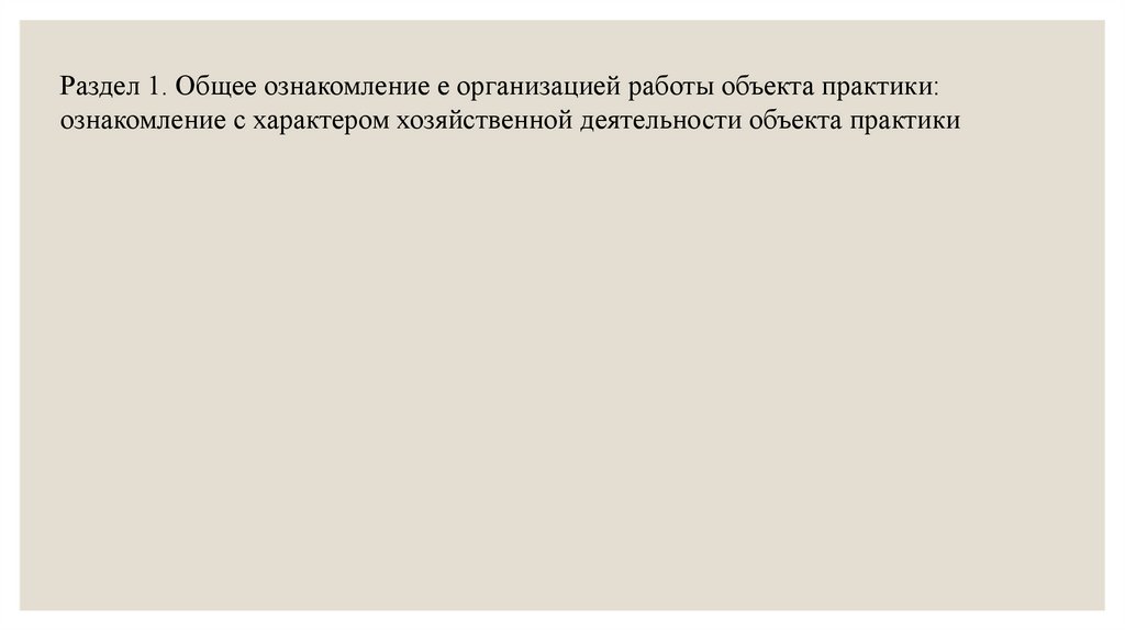 Раздел 1. Общее ознакомление е организацией работы объекта практики:ознакомление с характером хозяйственной деятельности объекта практики