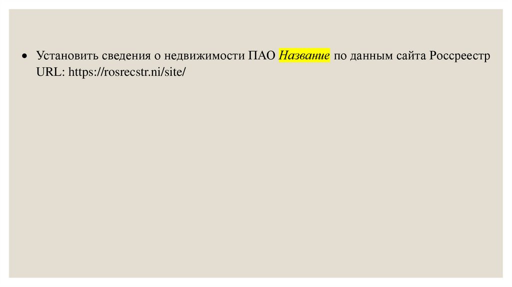 Установить сведения о недвижимости ПАО Название по данным сайта РоссреестрURL: https://rosrecstr.ni/site/
