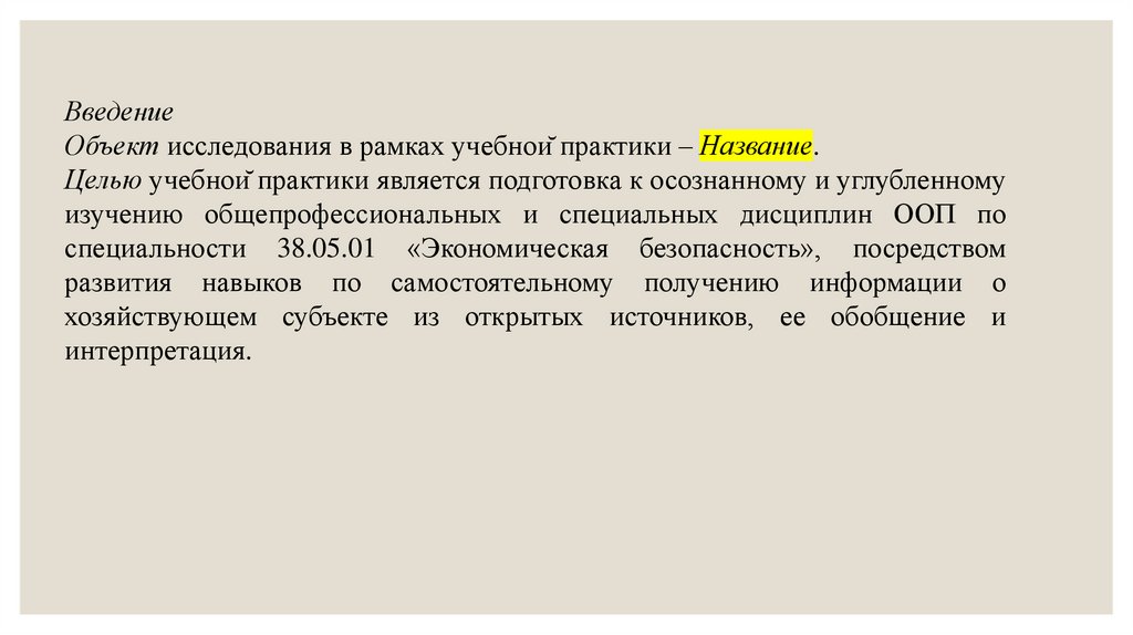 ВведениеОбъект исследования в рамках учебной практики – Название.