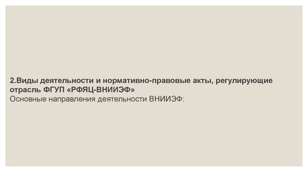 2.Виды деятельности и нормативно-правовые акты, регулирующиеотрасль ФГУП «РФЯЦ-ВНИИЭФ»