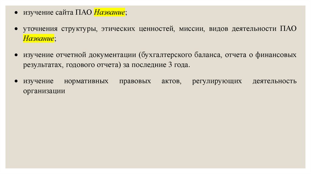 изучение сайта ПАО Название;уточнения структуры, этических ценностей, миссии, видов деятельности ПАО