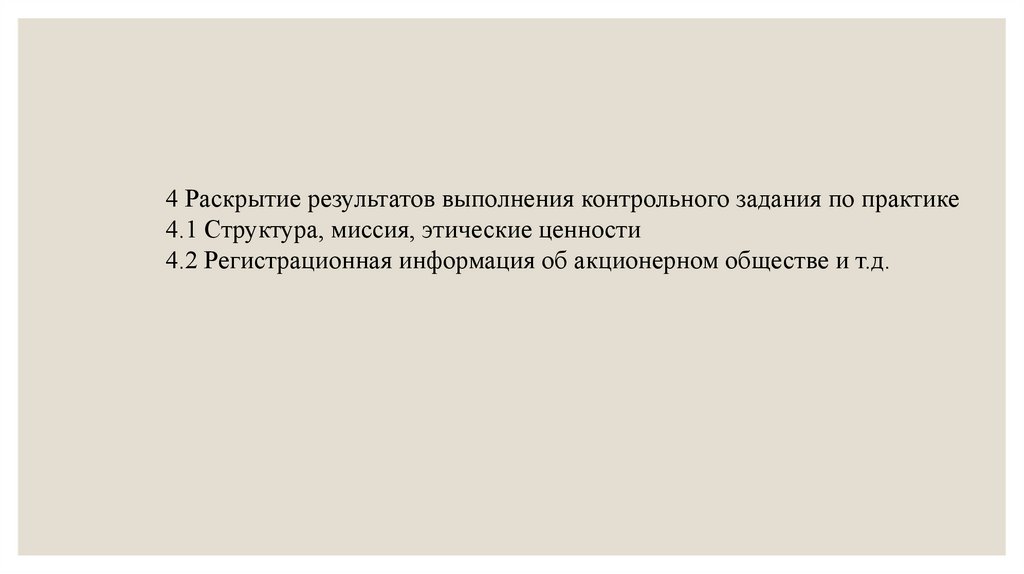 4.Раскрытие результатов выполнения контрольного задания по практике