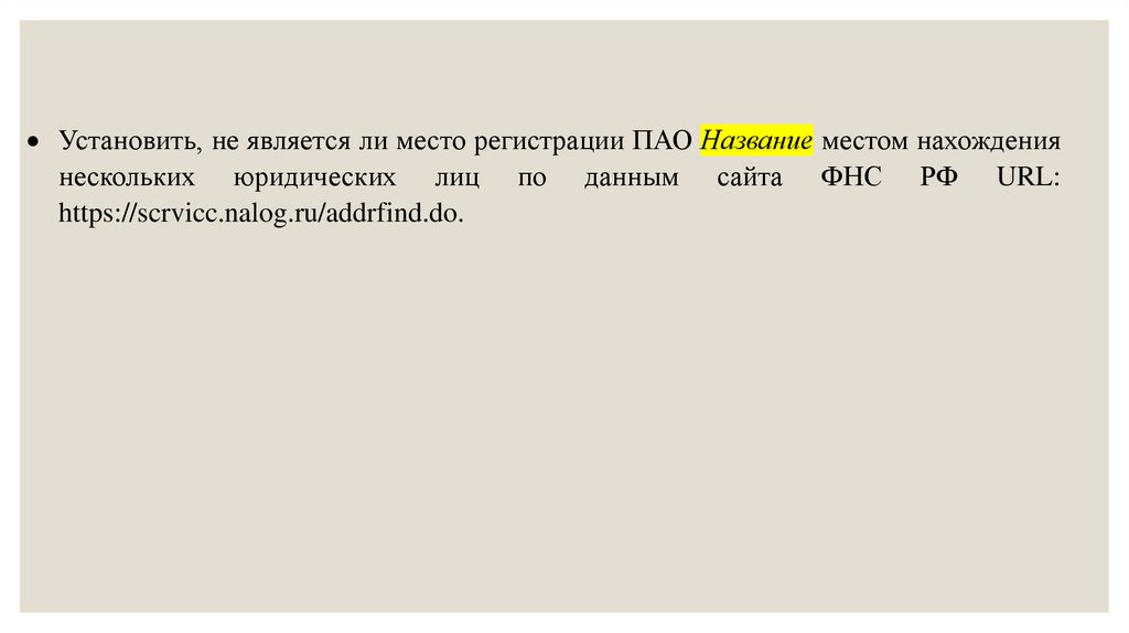 Установить, не является ли место регистрации ПАО Название местом нахождениянескольких юридических лиц по данным сайта ФНС РФ URL: