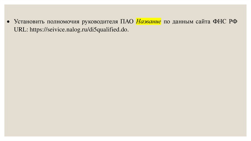 Установить полномочия руководителя ПАО Название по данным сайта ФНС РФURL: https://seivice.nalog.ru/di5qualified.do.