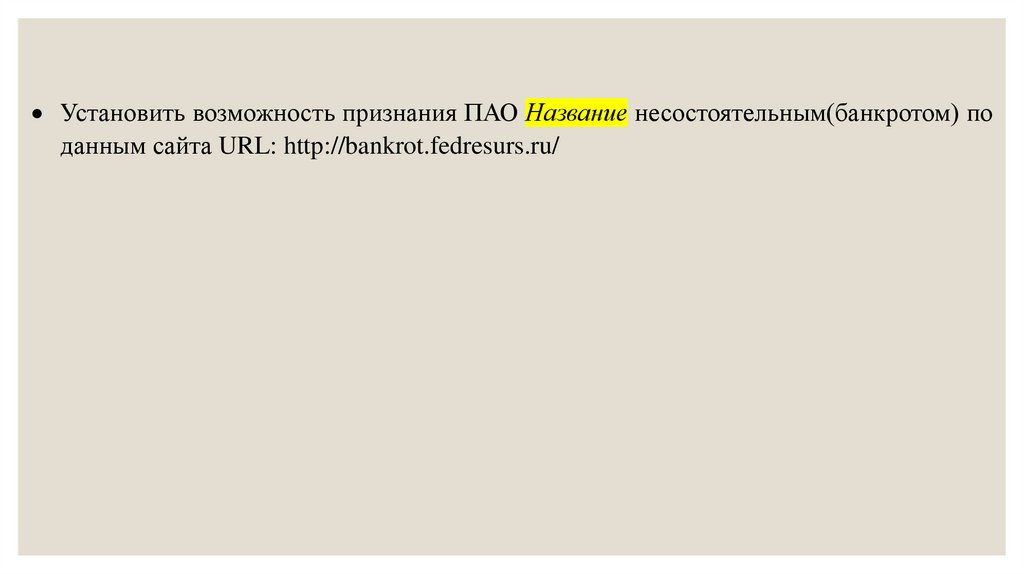 Установить возможность признания ПАО Название несостоятельным(банкротом) поданным сайта URL: http://bankrot.fedresurs.ru/