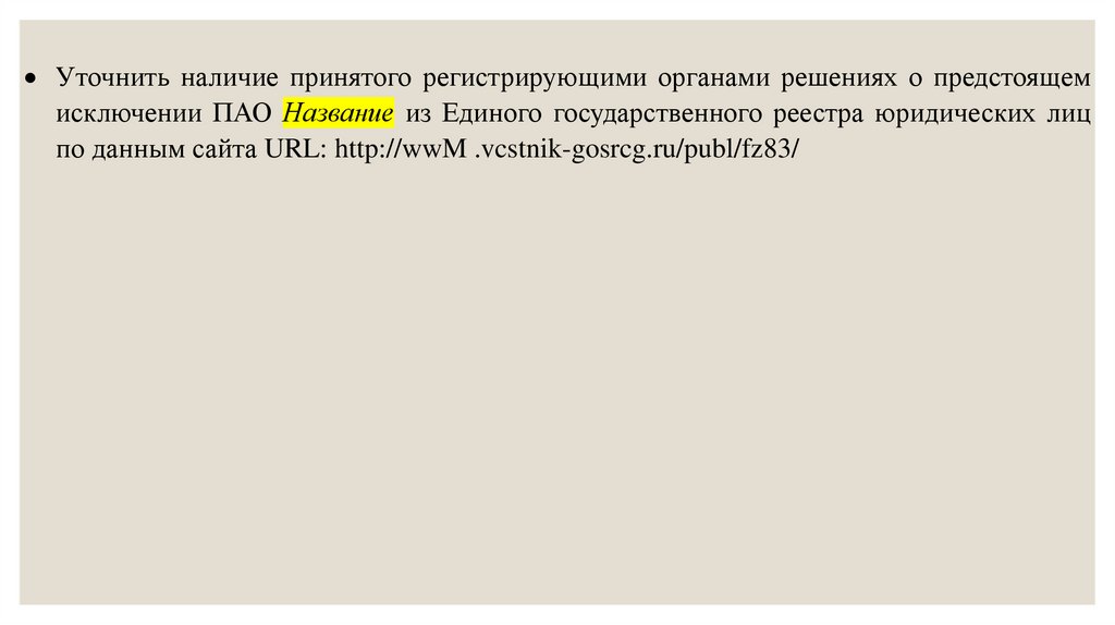 Уточнить наличие принятого регистрирующими органами решениях о предстоящемисключении ПАО Название из Единого государственного реестра юридических лиц