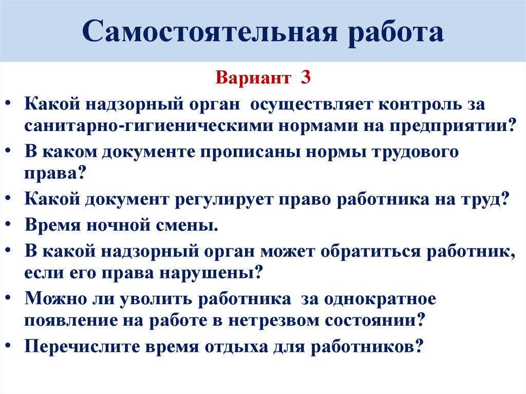 Самостоятельная по вариантам