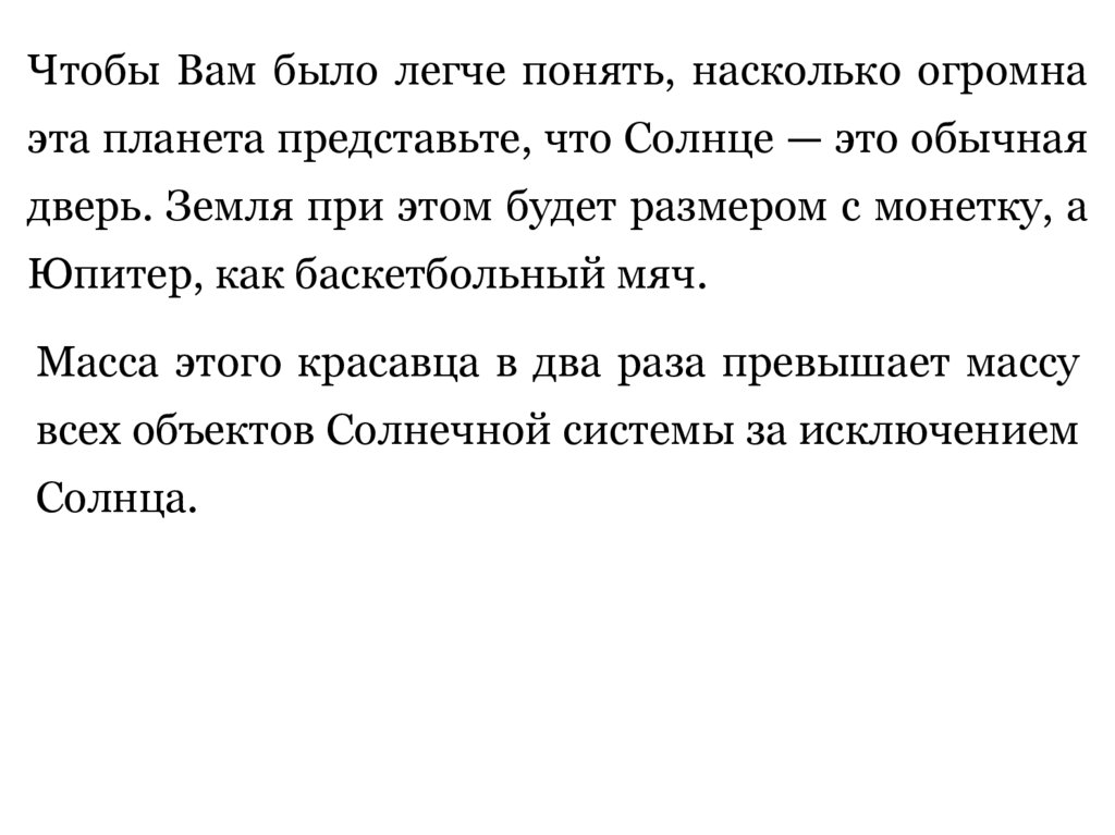 Чтобы Вам было легче понять, насколько огромнаэта планета представьте, что Солнце — это обычная