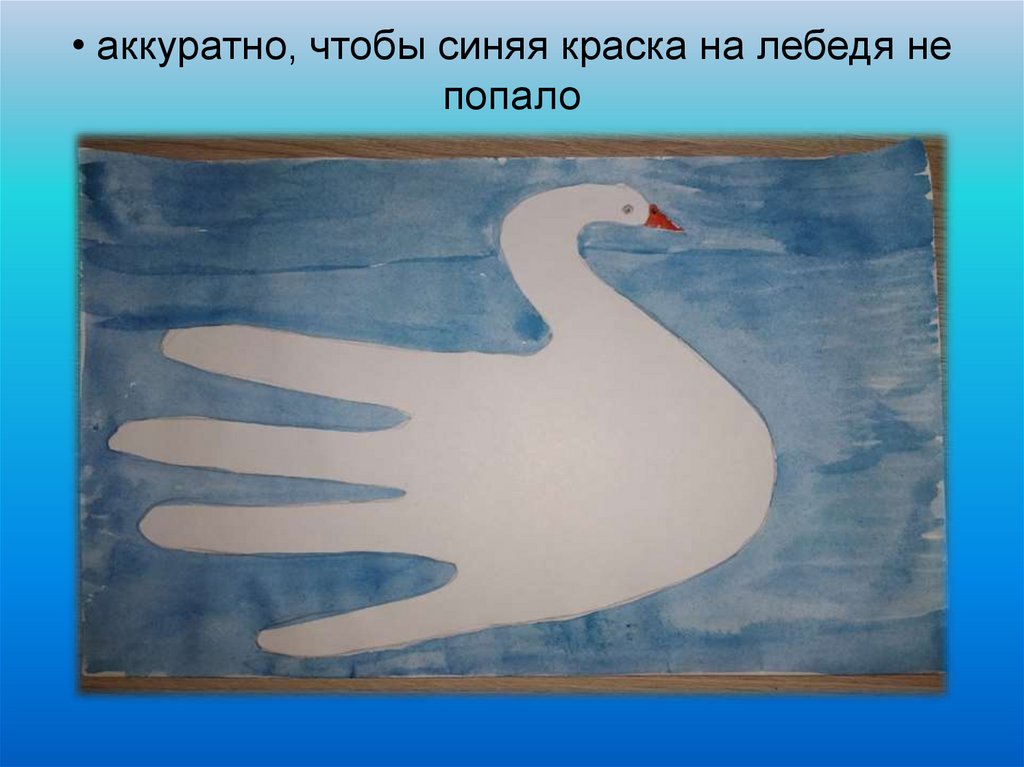 • аккуратно, чтобы синяя краска на лебедя непопало
