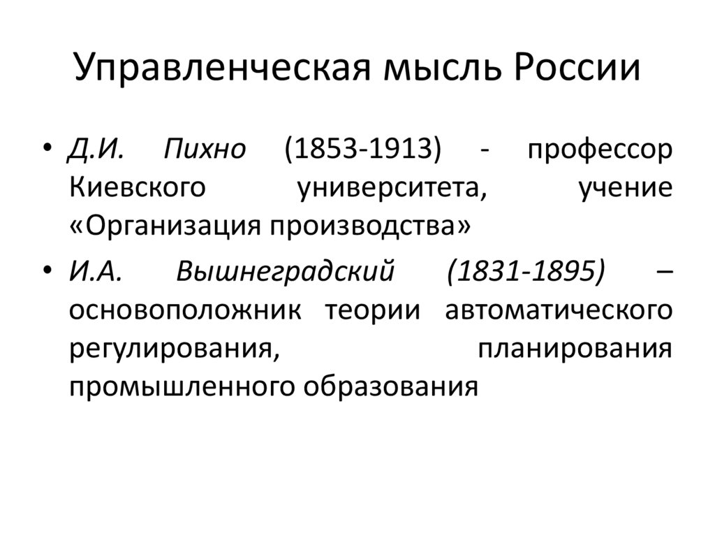 Управленческая мысль России• Д.И. Пихно (1853-1913) - профессор
