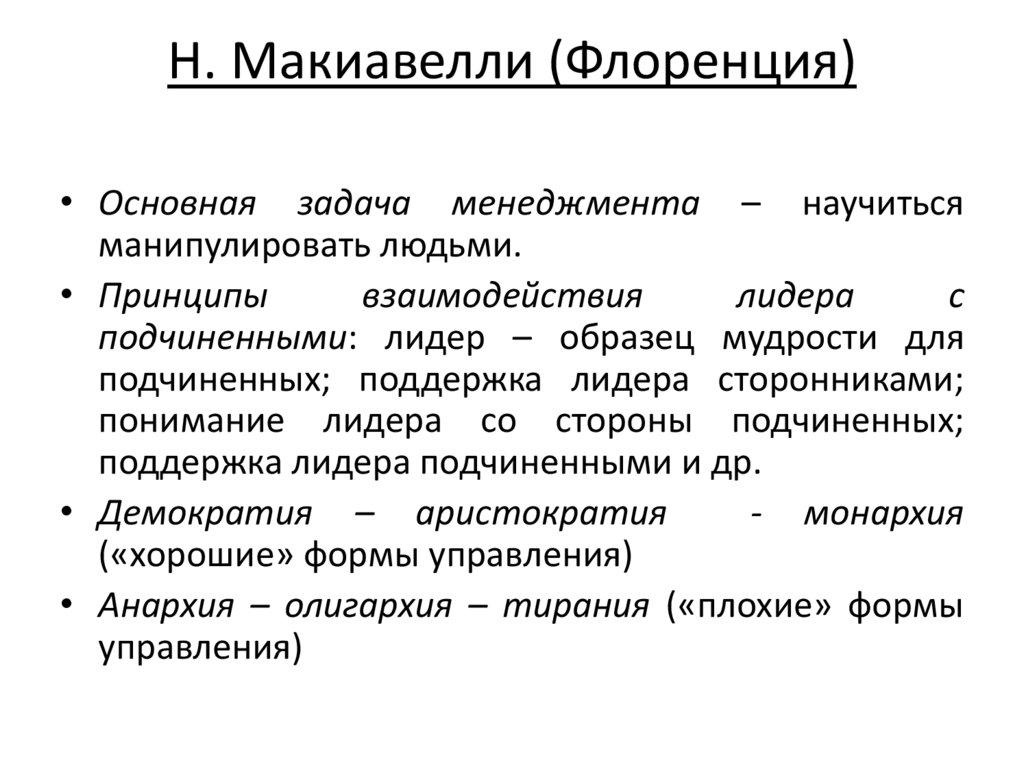 Н. Макиавелли (Флоренция)• Основная задача менеджмента – научиться